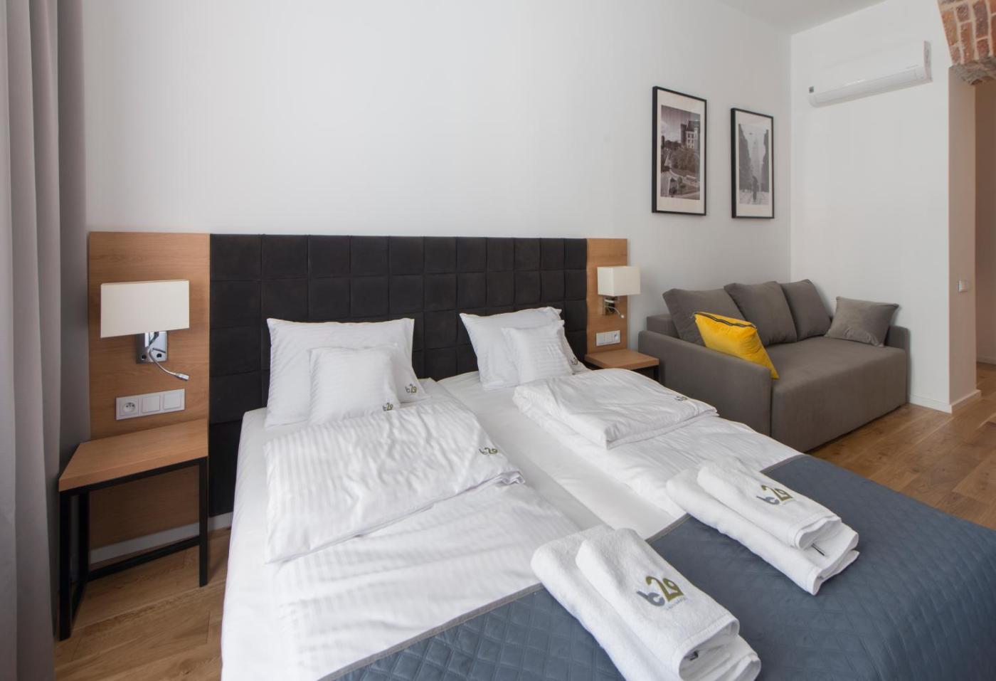 Apartament typu Standard. Jest to klimatyzowany apartament z oddzielnym wejściem, salonem, oddzielną sypialnią oraz łazienką z prysznicem i suszarką do włosów. W doskonale wyposażonym aneksie kuchennym przygotowano płytę kuchenną, lodówkę, przybory kuchenne i piekarnik. Apartament ten ma dźwiękoszczelne ściany. Do dyspozycji Gości jest część wypoczynkowa, telewizor z płaskim ekranem i dostępem do platform streamingowych oraz zestaw do parzenia kawy i herbaty. Z okien roztacza się widok na miasto. W tej opcji zakwaterowania zapewniono 2 łóżka. Apartament - 5 osobowy. Powierzchnia pokoju ok.: 45 mkw. ;