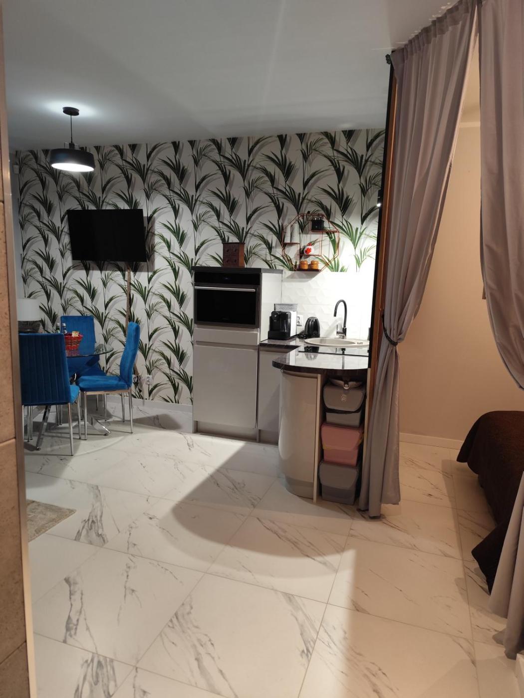 Apartament typu Studio z tarasem. Guests will find a stovetop, a refrigerator, kitchenware and an oven in the kitchen. The studio also features a barbecue. This studio is comprised of a flat-screen TV with streaming services, a private bathroom as well as a terrace with garden views. The unit has 2 beds. Studio - 4 osobowy. Powierzchnia pokoju ok.: 32 mkw.