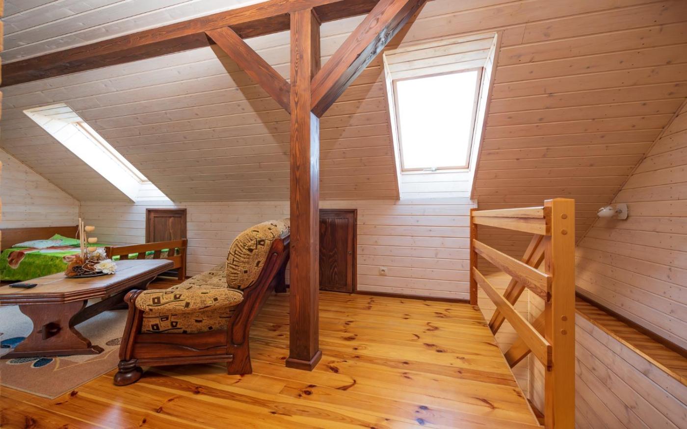 Dom z 2 sypialniami. This holiday homes special feature is the sauna. Featuring 2 bedrooms and 1 bathroom with a shower, this holiday home offers a well-fitted kitchenette and a terrace. Guests will find a stovetop, a refrigerator, a dishwasher and kitchenware in the kitchenette. The holiday home also offers a barbecue. The holiday home provides a flat-screen TV, a tea and coffee maker, a wardrobe, parquet floors as well as garden views. The unit has 3 beds. Dom wakacyjny - 5 osobowy. Powierzchnia pokoju ok.: 100 mkw.